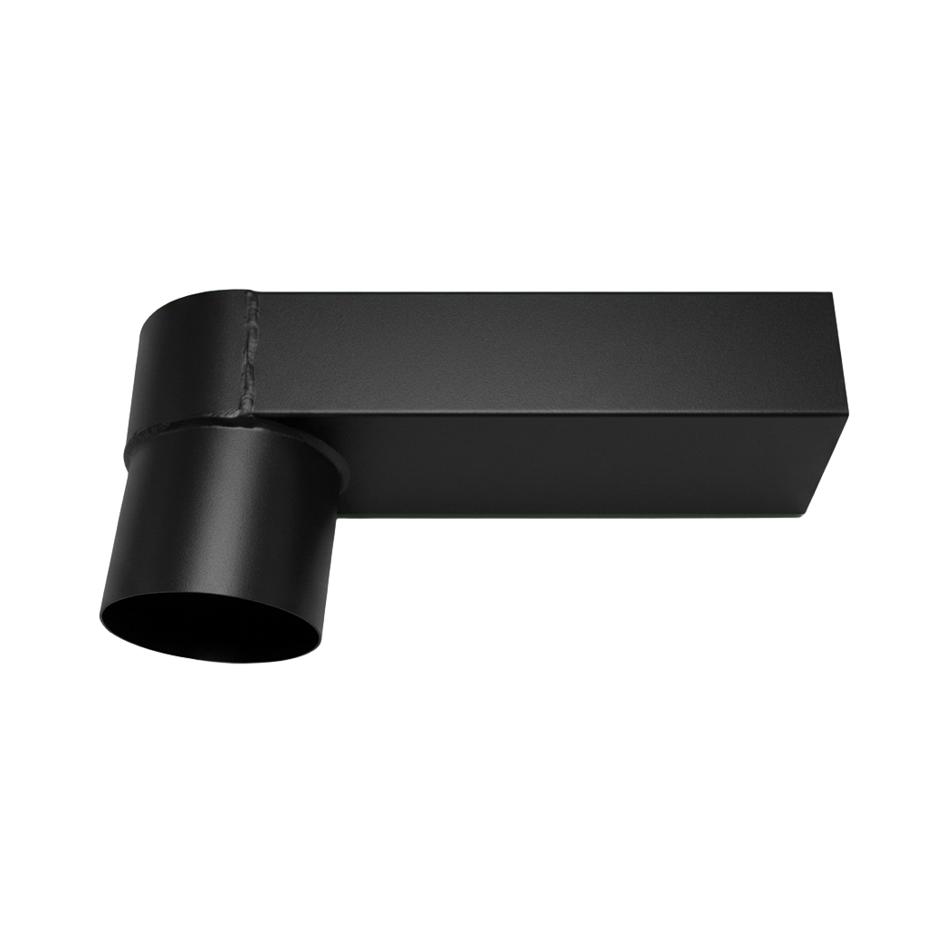 De Zwart aluminium stadsuitloop wordt gebruikt als verbindingsstuk tussen de woning en de zinken regenpijp. Het rechthoekige gedeelte van de aluminium stadsuitloop wordt over de loden zij-uitlaat van de kiezelbak geschoven en de ronde uitloop past in de aluminium regenpijp.